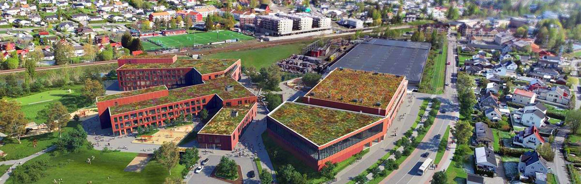 Dørene er allerede blitt godt tatt i bruk. Skolen er bygget av BetonMast som er et av Norges største entreprenør- og eiendomsutviklingskonsern. Prosjektet til 1,2 milliarder ligger ved siden av industriområdet BMI Icopal og består av fire bygg; skolebygget, to flerbrukshaller og en svømmehall.