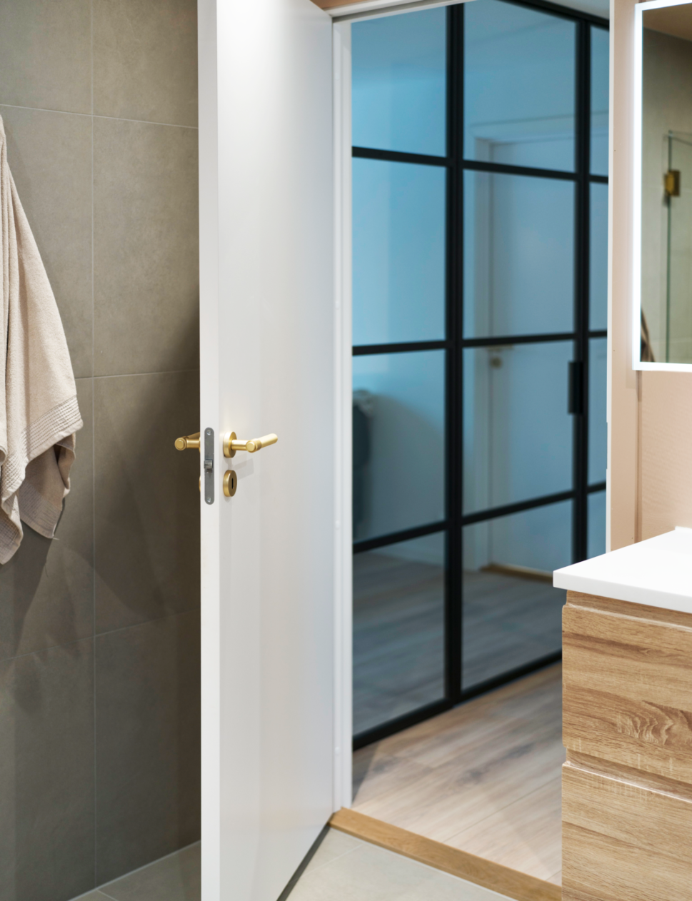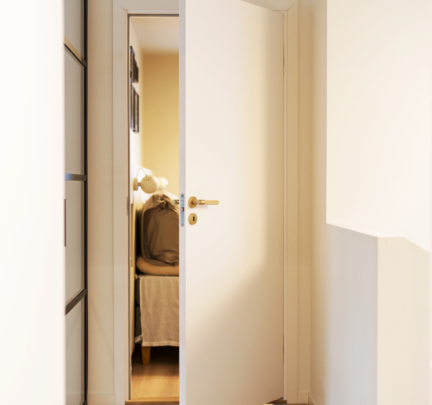 Med fokus på renhet og minimalisme skaper de skjulte hengslene et sømløst uttrykk på døren.