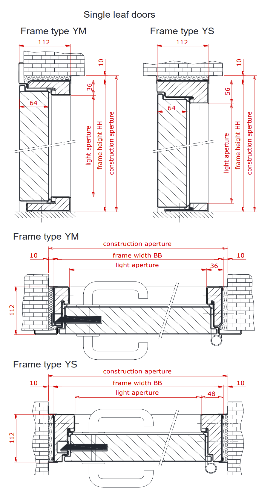 - Lysåpning ved 180gr åpning 894mm (YS), 918 (YM) (10M dør)