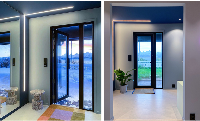 – Vi ønsket en ytterdør som skilte seg litt ut – den skulle være stilig å se på, men også en kilde til godt lys i en mørk første etasje. Vi tok kontakt med Nordic Door som var helt rå på å lytte til våre behov, og gi oss forslag til hvilke dører som kunne passe oss. Det var spesielt viktig for oss med en ytterdør som tåler værforholdene vi har her i Bodø, sier Karoline.